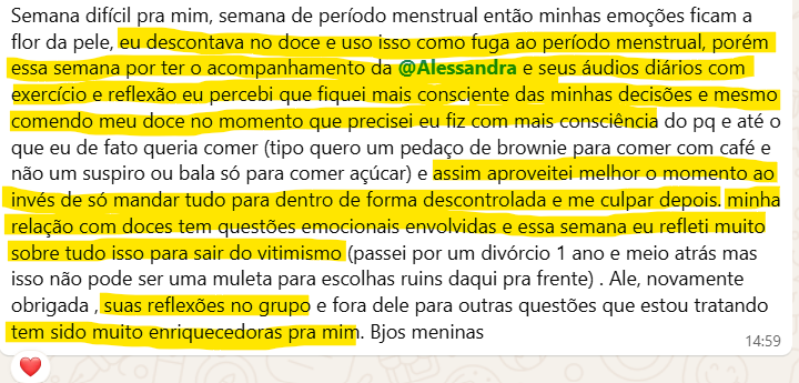 Você não precisa ser perfeita. Mesmo quem não fez todas as tarefas relatou mudanças incríveis só de ouvir e refletir. Cada passo conta.